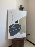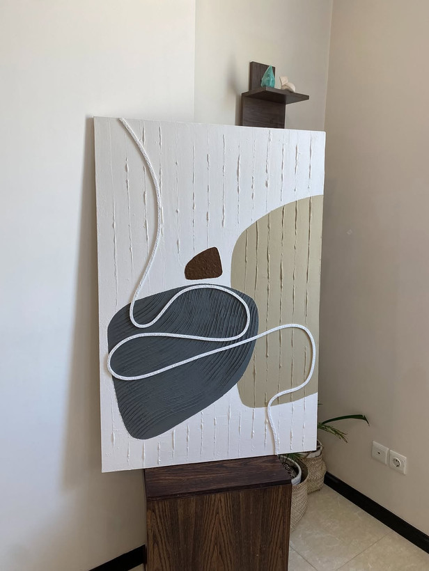 این تابلو مینیمال با ترکیب رنگهای خاکی و خنثی (طوسی زغالی، کرم شنی، قهوهای گرم و سفید) میتونه به هر فضایی آرامش و هارمونی بده. طراحی و بافت برجستهی خاصش باعث میشه هم برای دکور مدرن مناسب باشه، هم برای فضاهای مینیمال و شیک. رنگها و سایز رو میتونم دقیقاً مطابق سلیقه و دکور شما شخصیسازی کنم، تا یک اثر هنری منحصربهفرد مخصوص خودتون داشته باشید. ابعاد: ۸۰*۱۲۰