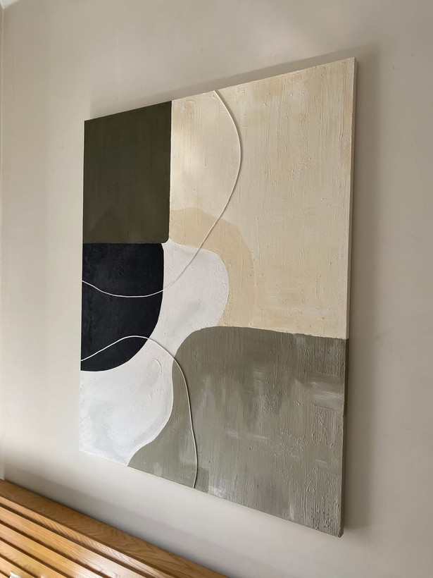 هنر مینیمال برای دکور مدرن شما این تابلو با ترکیب رنگهای خنثی و آرامشبخش (سبز خاکی، سفید، کرم و مشکی) در کنار بافتهای ظریف و خاص طراحی شده؛ ترکیبی که بهراحتی با هر دکوراسیون مدرن، مینیمال یا نئوکلاسیک هماهنگ میشه. وجود بافتهای برجسته و خطوط منحنی، حس عمق و ظرافت خاصی به فضا میده. ویژگیها: • اجرای دستی و خاص روی بوم • قابل در سایز و رنگ دلخواه (Customize) • مناسب برای خانه، دفتر، کافه و فضاهای مدرن این اثر میتونه بهصورت کاملاً شخصیسازیشده برای شما ساخته بشه؛ یعنی دقیقا مطابق رنگ دکوراسیون و سلیقهی شما. برای و مشاوره، همین الان پیام بدید. خبر خوب اینکه پرداخت دو مرحله ایی هم داریم.