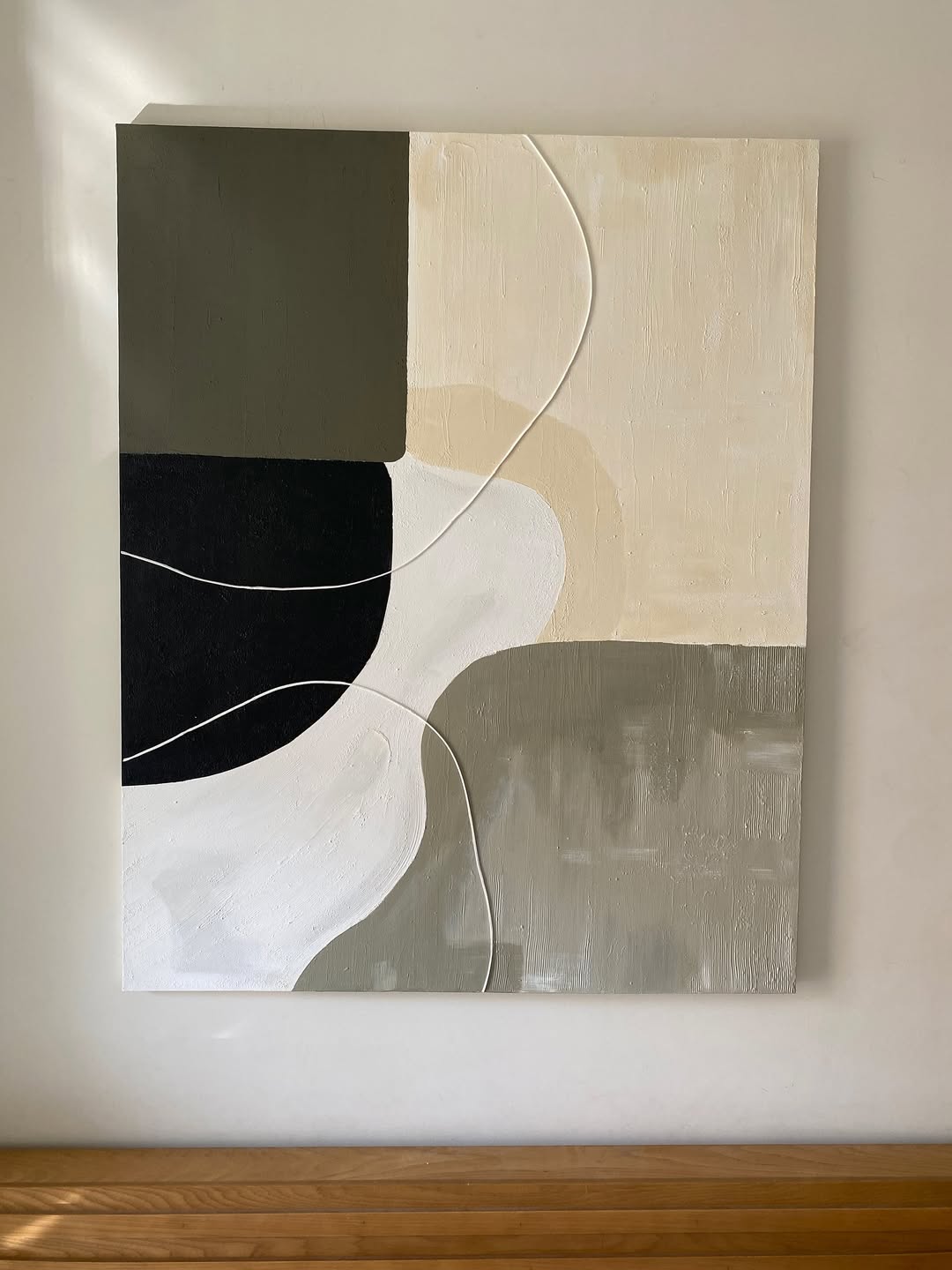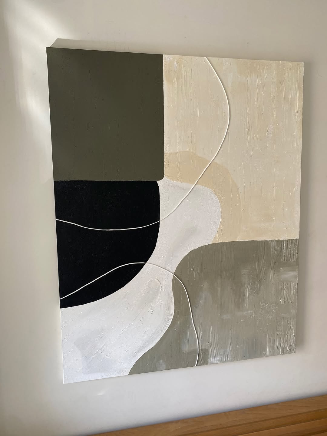 هنر مینیمال برای دکور مدرن شما این تابلو با ترکیب رنگهای خنثی و آرامشبخش (سبز خاکی، سفید، کرم و مشکی) در کنار بافتهای ظریف و خاص طراحی شده؛ ترکیبی که بهراحتی با هر دکوراسیون مدرن، مینیمال یا نئوکلاسیک هماهنگ میشه. وجود بافتهای برجسته و خطوط منحنی، حس عمق و ظرافت خاصی به فضا میده. ویژگیها: • اجرای دستی و خاص روی بوم • قابل در سایز و رنگ دلخواه (Customize) • مناسب برای خانه، دفتر، کافه و فضاهای مدرن این اثر میتونه بهصورت کاملاً شخصیسازیشده برای شما ساخته بشه؛ یعنی دقیقا مطابق رنگ دکوراسیون و سلیقهی شما. برای و مشاوره، همین الان پیام بدید. خبر خوب اینکه پرداخت دو مرحله ایی هم داریم.